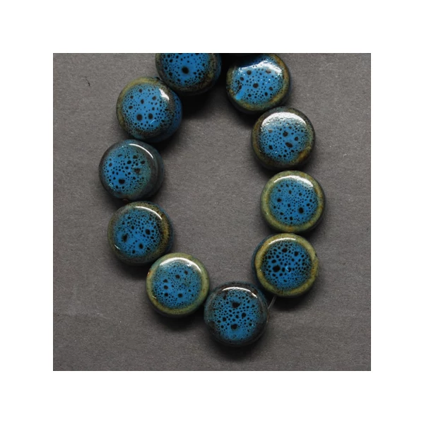 Antik mázas búzavirág kék porcelán, kerámia gyöngy (12x7mm)