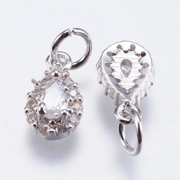Az ezüst színű csepp alakú cirkónia fityegő tökéletes választás minden ékszerkedvelő számára. Kontrasztos fényessége és elegáns formája könnyen feldobja a legegyszerűbb outfitet is. A fityegő mérete 11x6x3,5 mm, így ideális bármilyen nyaklánc vagy karkötő kiegészítésére. Bronz alapanyaga garantálja a tartósságot, míg nikkelmentes kialakítása a bőrbarát viseletet biztosít. Egy darabos kiszerelésének köszönhetően könnyedén variálható más ékszerekkel. Legyen része a mindennapjaidnak ez a stílusos charm!