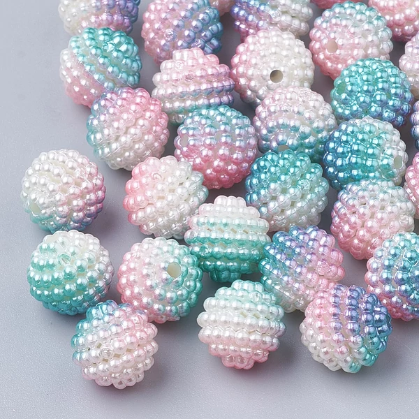 10db Színjátszó türkizkék-rózsaszín bogyós akril gyöngy (10mm)
